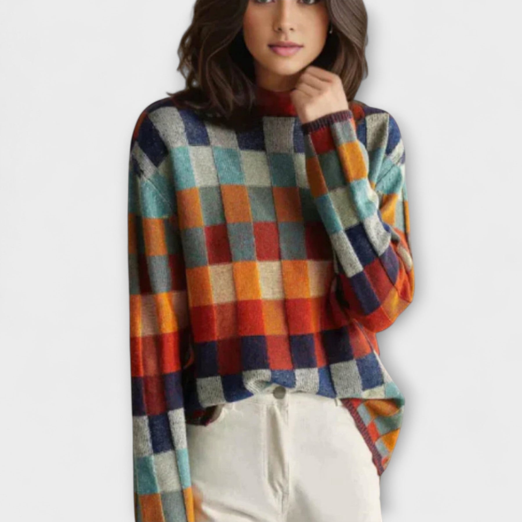Viva o puro luxo e calor com a nossa camisola de gola alta filipa em patchwork de caxemira – a escolha perfeita para o inverno! Com detalhes únicos em patchwork e uma gola quente, mantém o seu estilo e conforto durante a estação fria.