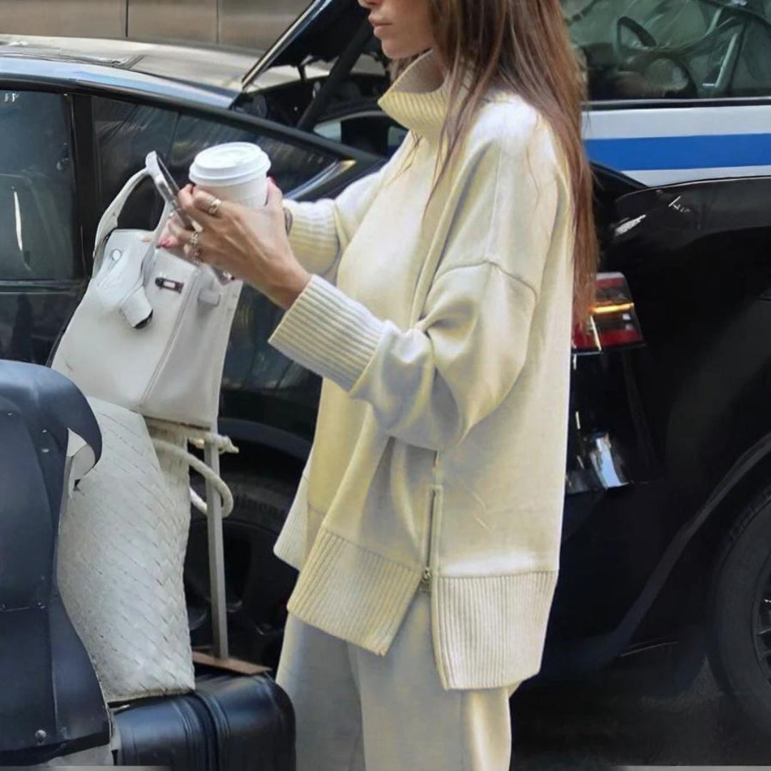 Camisola de gola alta — design elegante com fecho lateral que adiciona praticidade e estilo.