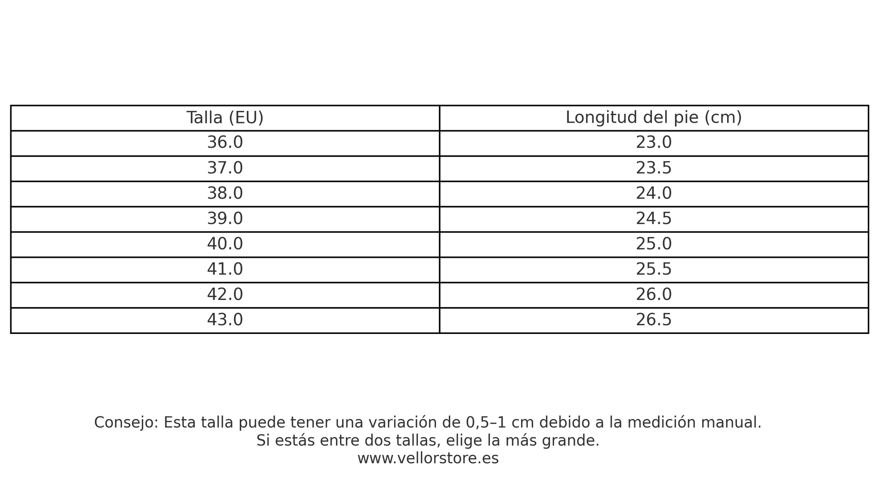 | Tamanho (EU) | Comprimento do Pé (cm) |